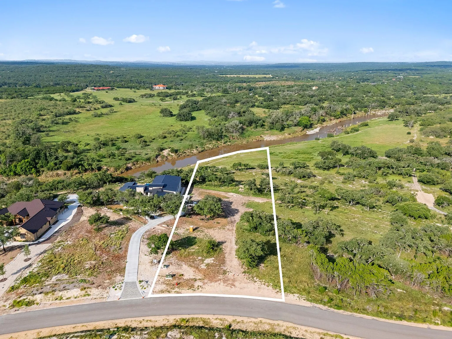We guarantee a Texas lake house built on the Showstopper would be a legacy residence that you and your family would cherish for decades. The Showstopper spans a stunning 2.83 acres and is true riverfront property that runs right down to the Guadalupe. $649,000. It is a jawdropping, movie-credits-worthy view, one of the best in the entire development, with no similar listings. Because the lot to the north doesn’t have true riverfront access (there’s a community park between it and the river), no one can build in front of the views from this lot.